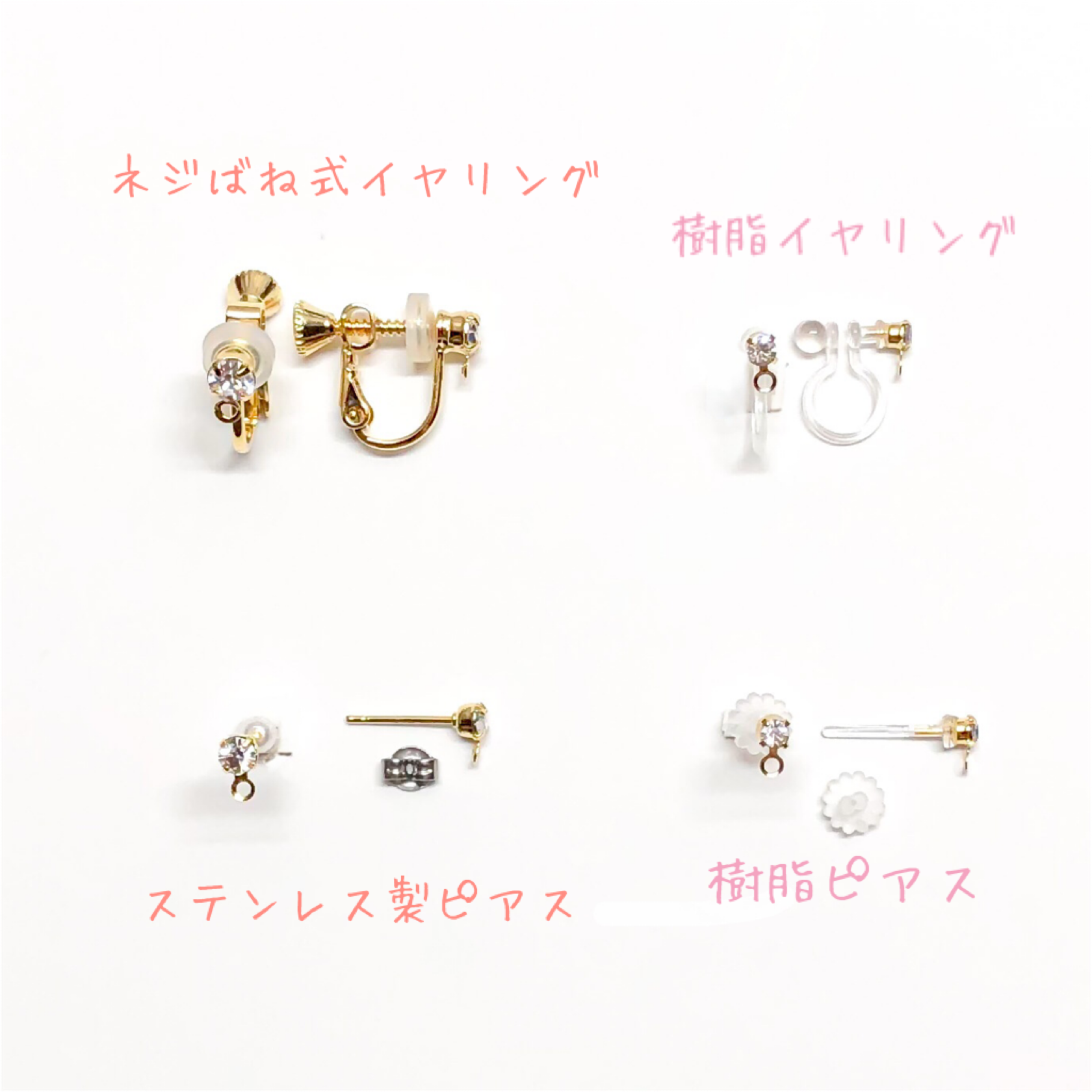 ・ピアス:ステンレス製ピアス・樹脂ピアス(金属アレルギーに配慮)